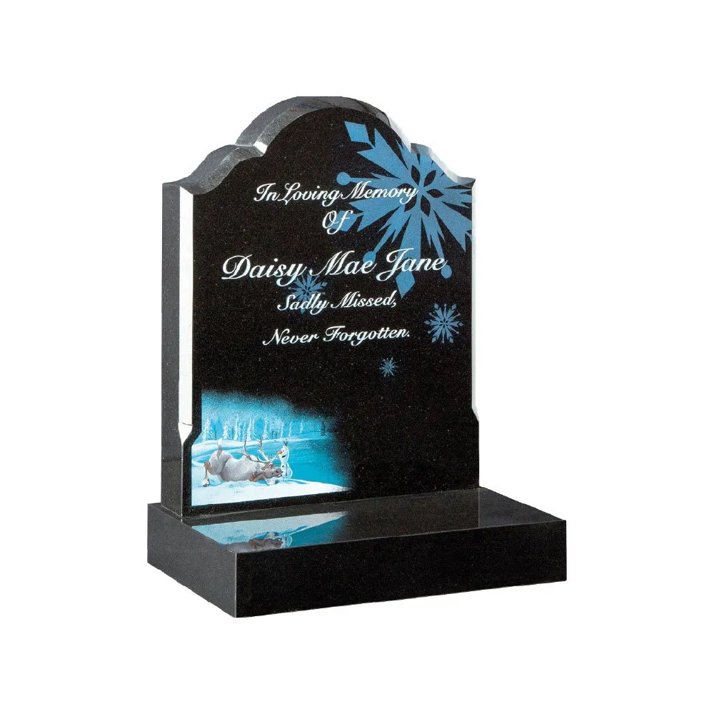 A Black Granite Children’s memorial with an intricately painted scene (16162). From beautifully simple designs to exquisite painted scenes, this