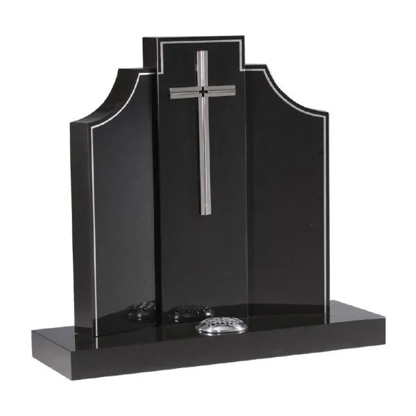 This Black Granite Triple-Faced Headstone with Cross Ornament is a beautiful way to honor the memory of your departed loved one. Crafted with exquisite detail using high-quality Black Granite, this headstone is designed to withstand any outdoor elements. In addition, it features a silver pin line.