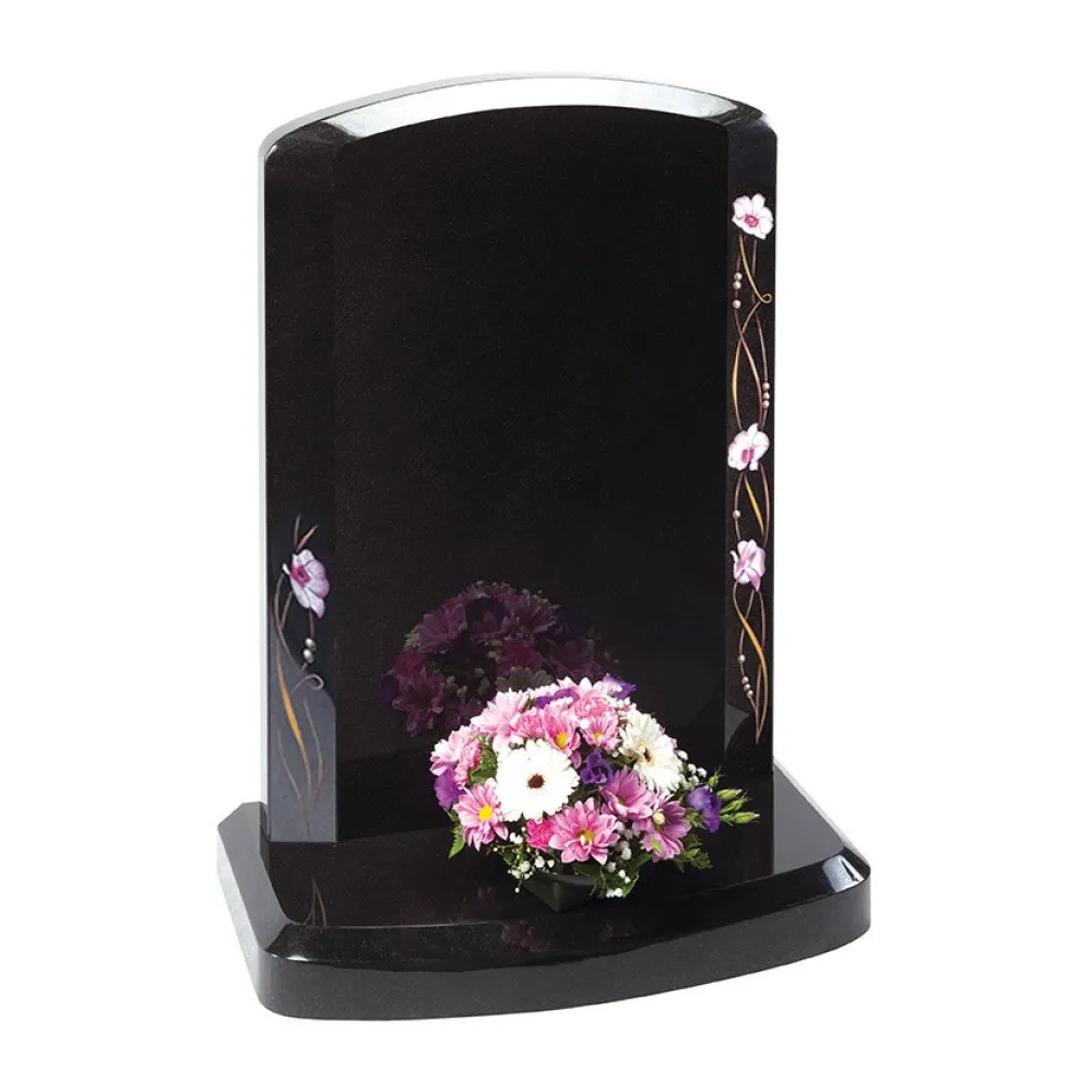To perfectly remember the life of your departed loved one, consider this Camerton memorial with contemporary shape and modern design creating a stylish look. The stylised orchid design winds up the broad chamfered sides of this elegant memorial.