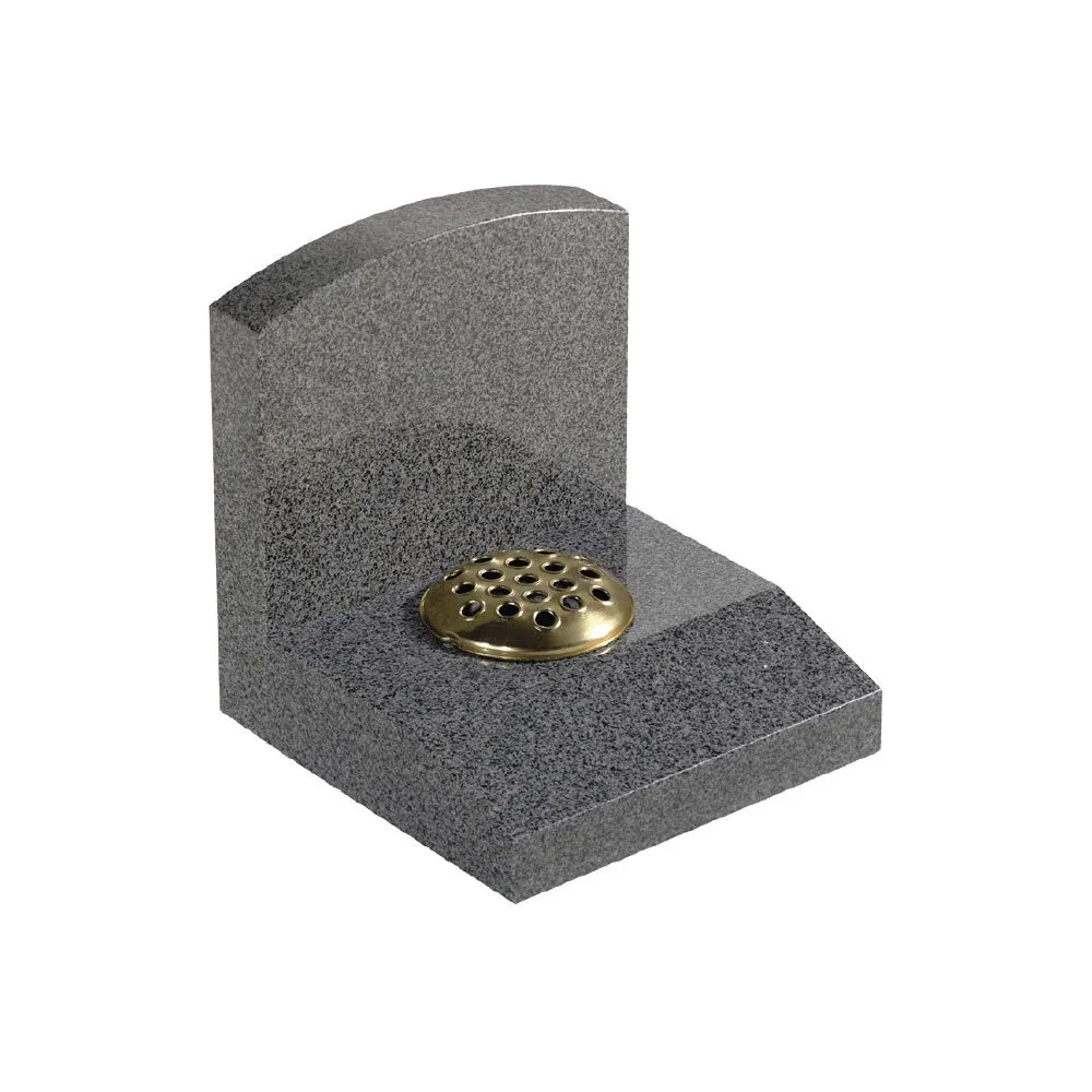 This unique desk memorial offers a beautiful and lasting homage to a loved one. Expertly crafted using strong Dark Grey Granite, this desk memorial is built to stand the test of time. This unique design features a standing headstone and is complete with a single memorial flower vase.