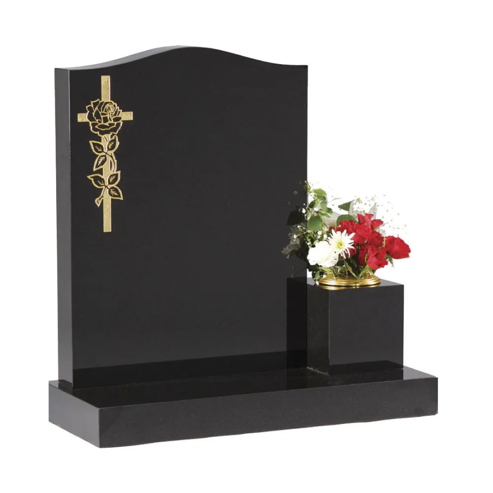 Home Cemetery Memorials Granite Ogee Headstone with Gilded Cross and Memorial Vase
