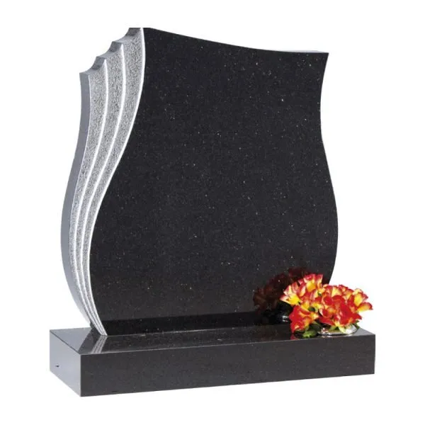 A Black Granite cemetery memorial with shaped top shoulders and chamfered edges. Crafted beautifully with premium quality granite, this piece