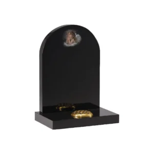 Black Granite Arc Top Headstone with Cherub Design